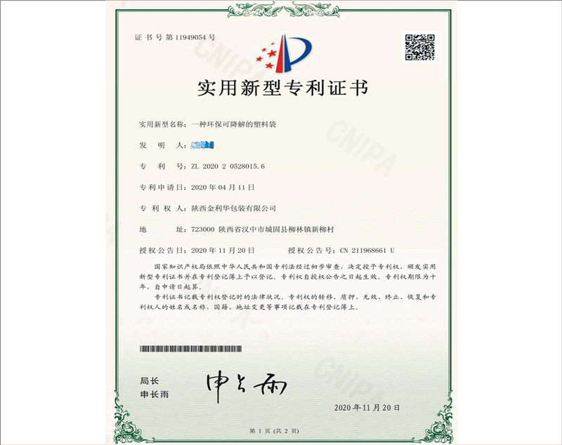 欢迎来到金利华专利证书-企业荣誉-陕西金利华包装有限公司官方网站!